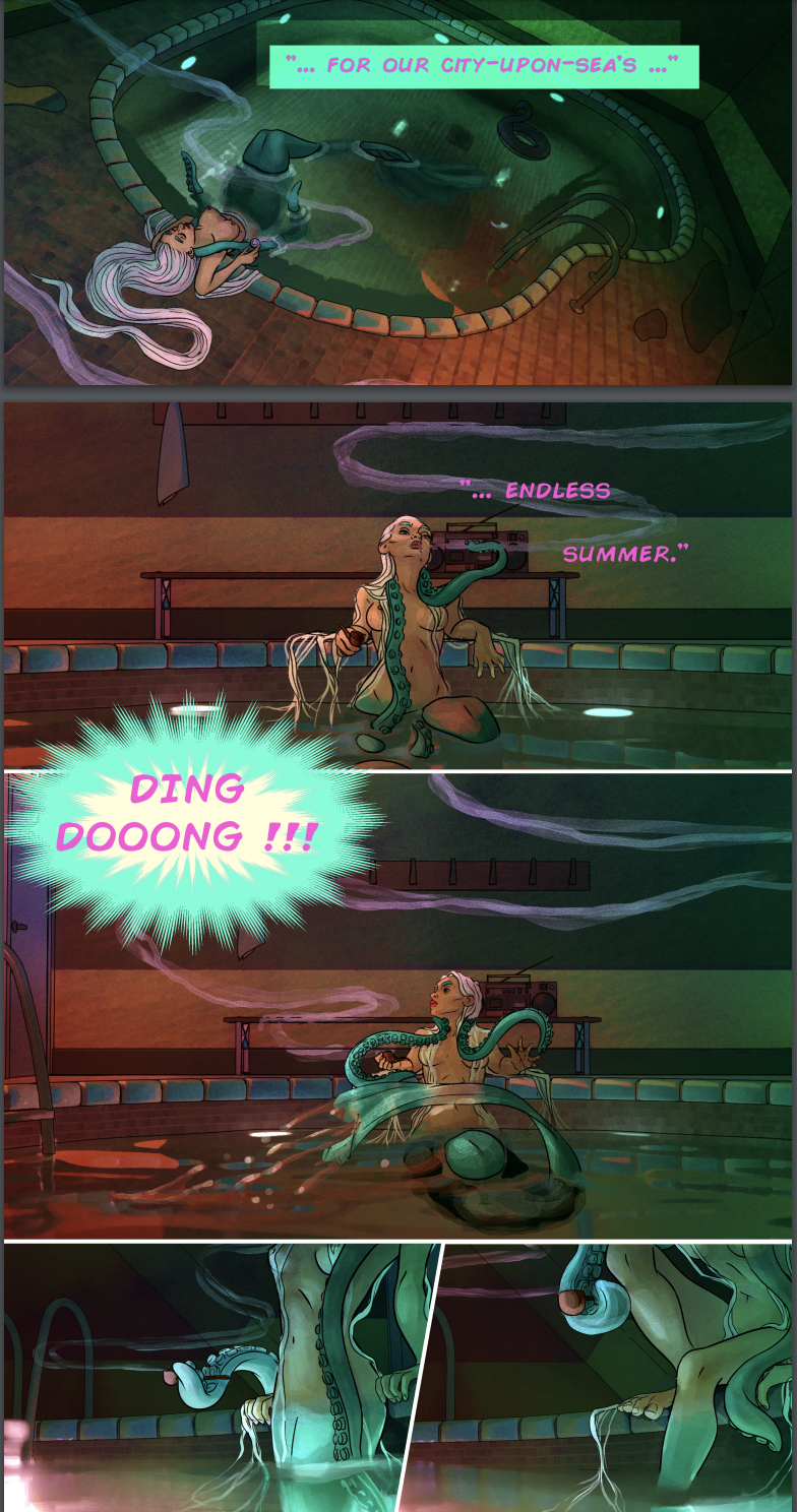 ODYSSEA is an Aquapunk graphic novel exploring themes of dualism and identity, told through the eyes of a depressed mermaid.